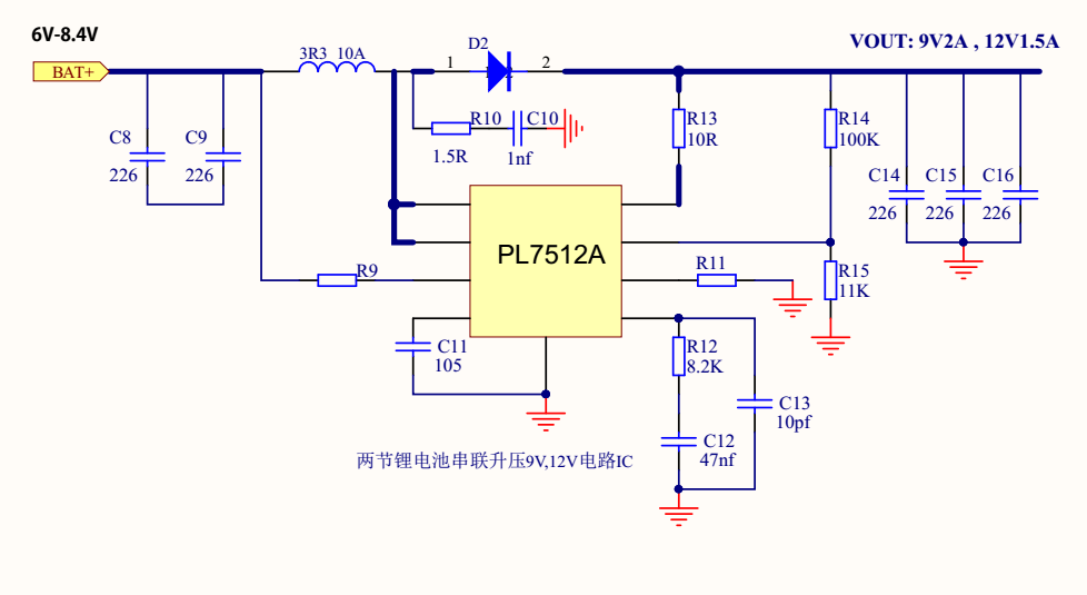 PL7512A是颗DC-DC升压转换器,支持宽 电压输入 ,能满足两节/双节锂电池串联输入, 升压输出9V或者12V高压。