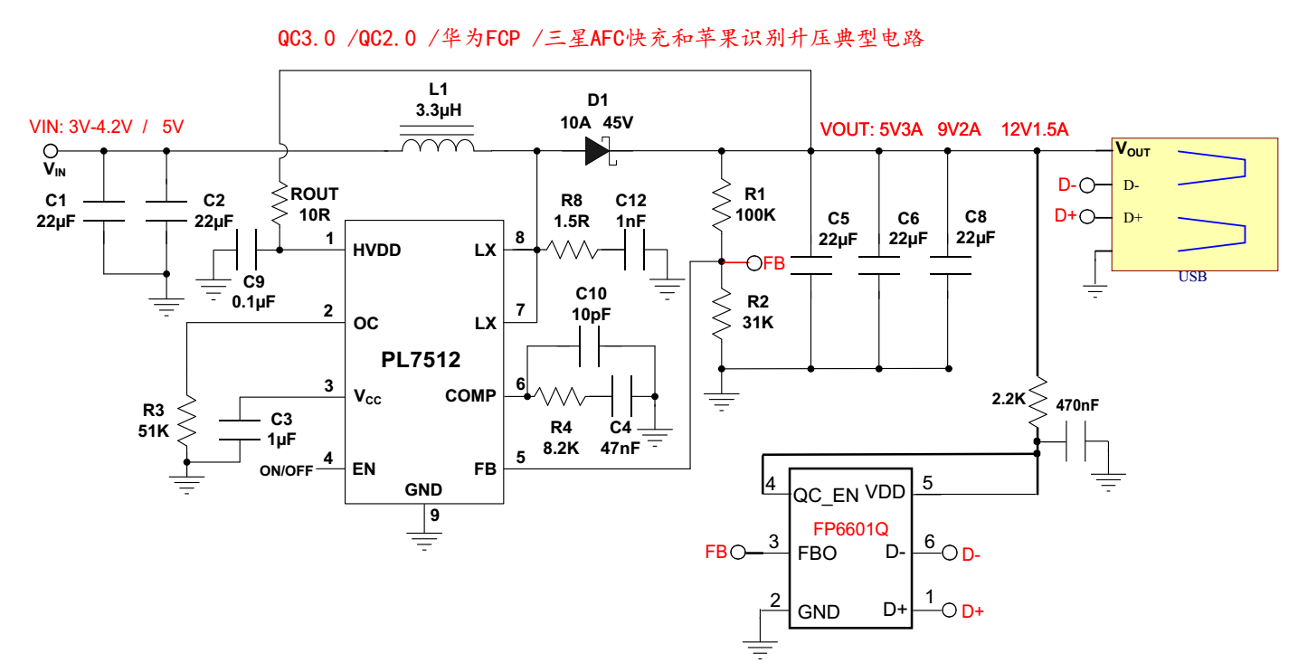 ●可以直接PIN对PIN FP6601(QC2.0快充识别IC)