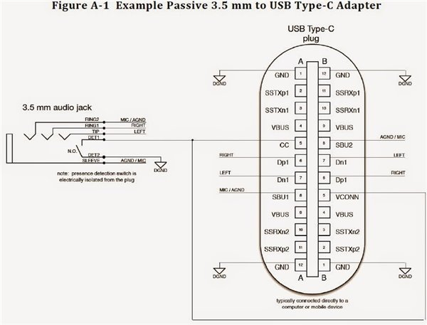 当 CC pin两个都接了下拉电阻 <=Ra, DFP进入音频配件模式,左右声道, mic都俱全,如上图。