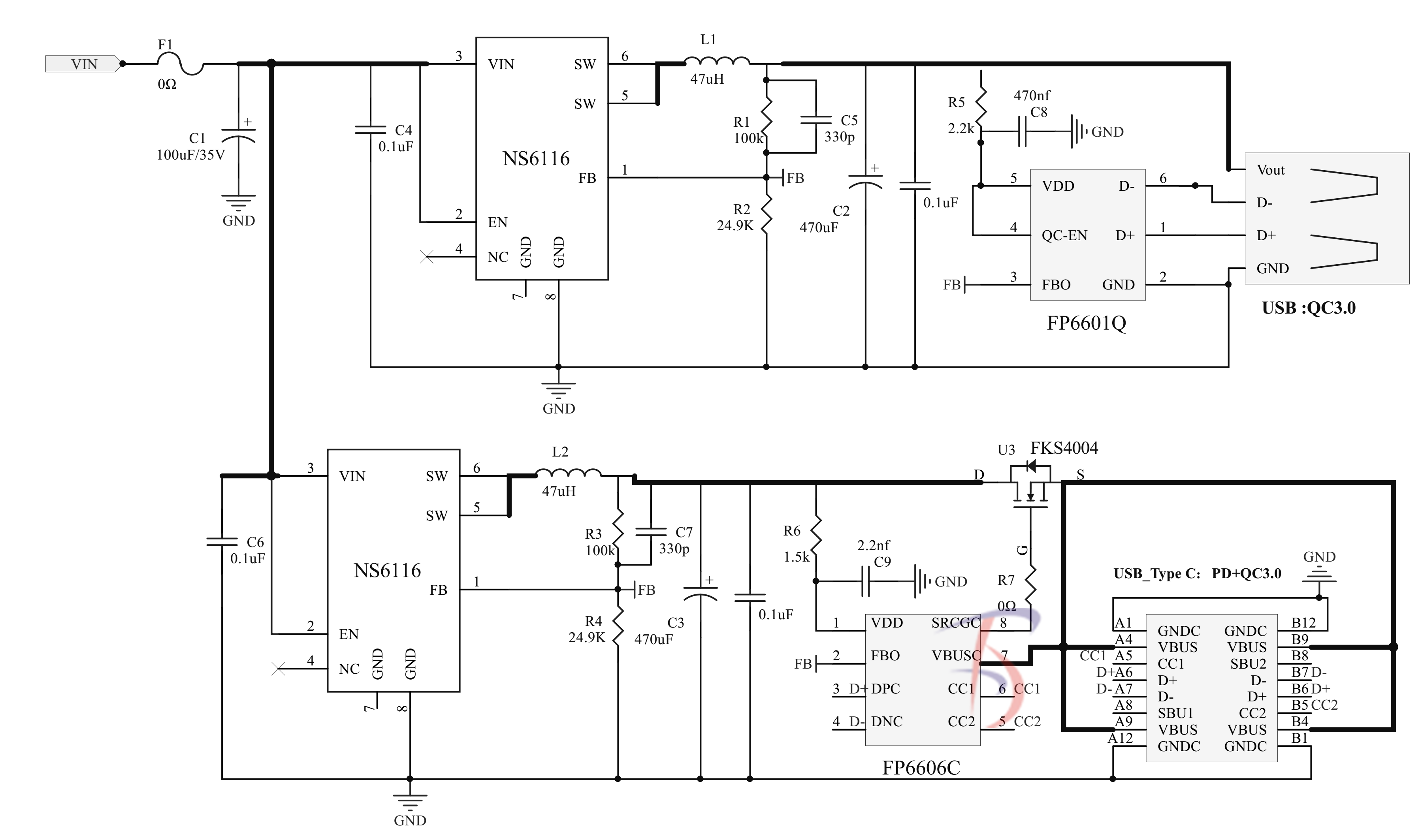 协议芯片:FP6606C 天德钰 (PD3.0/2.0协议+FP6601Q二合一芯片 )