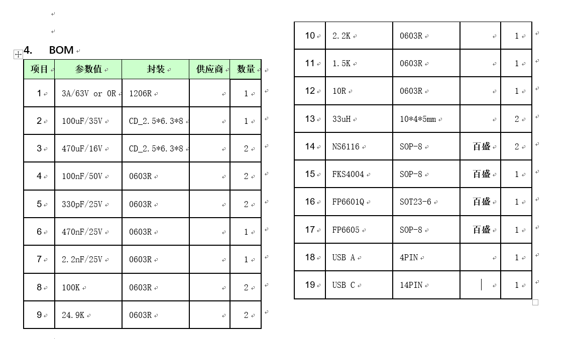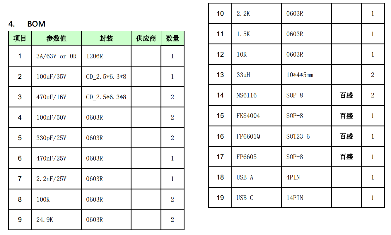 4,BOM表: