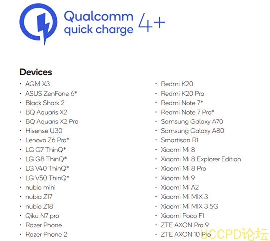 我们 UCCPD论坛还在高通拿到了,目前最新的支持 QC4+/QC4的手机设备。