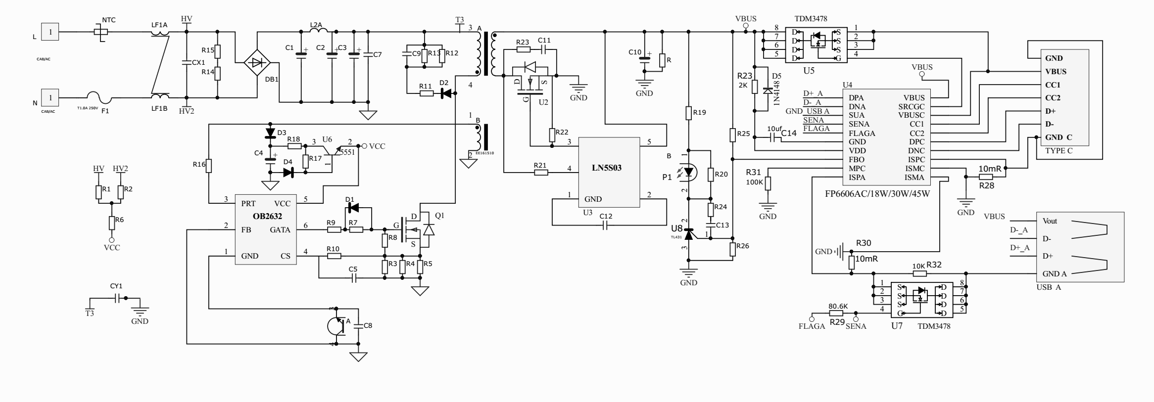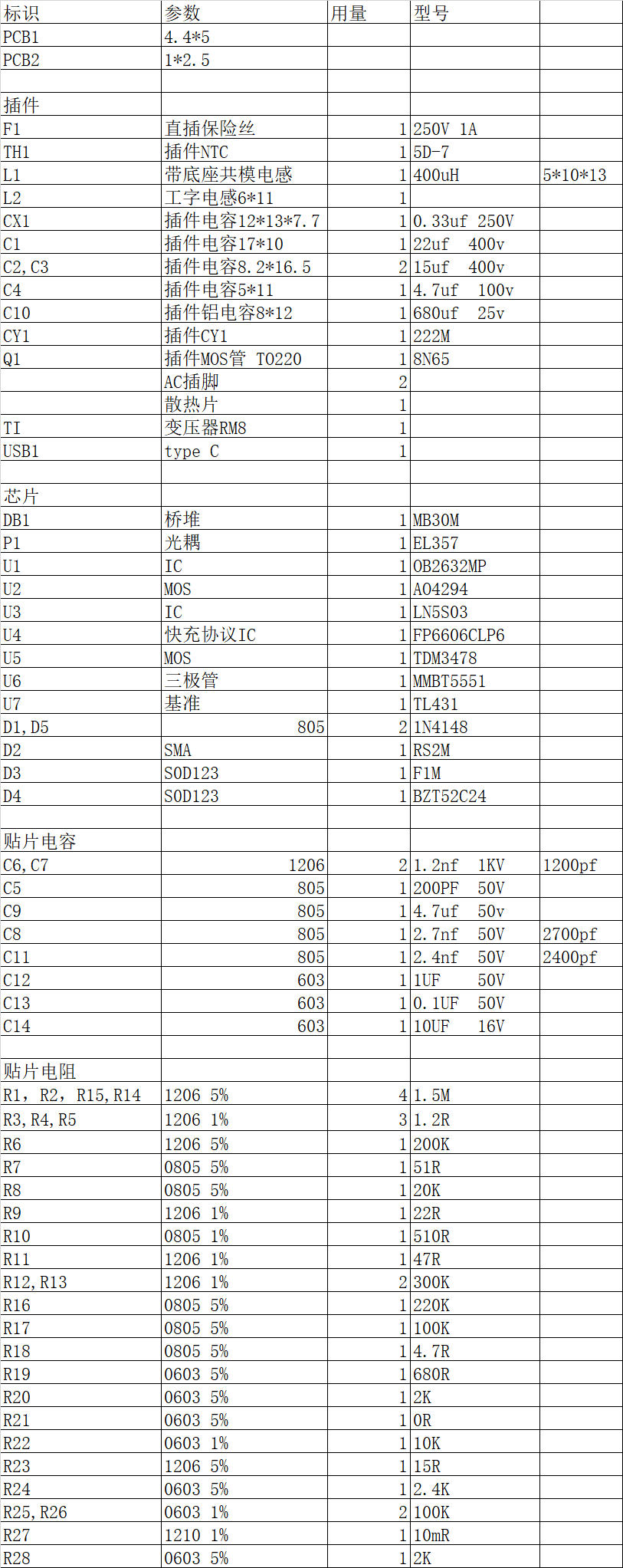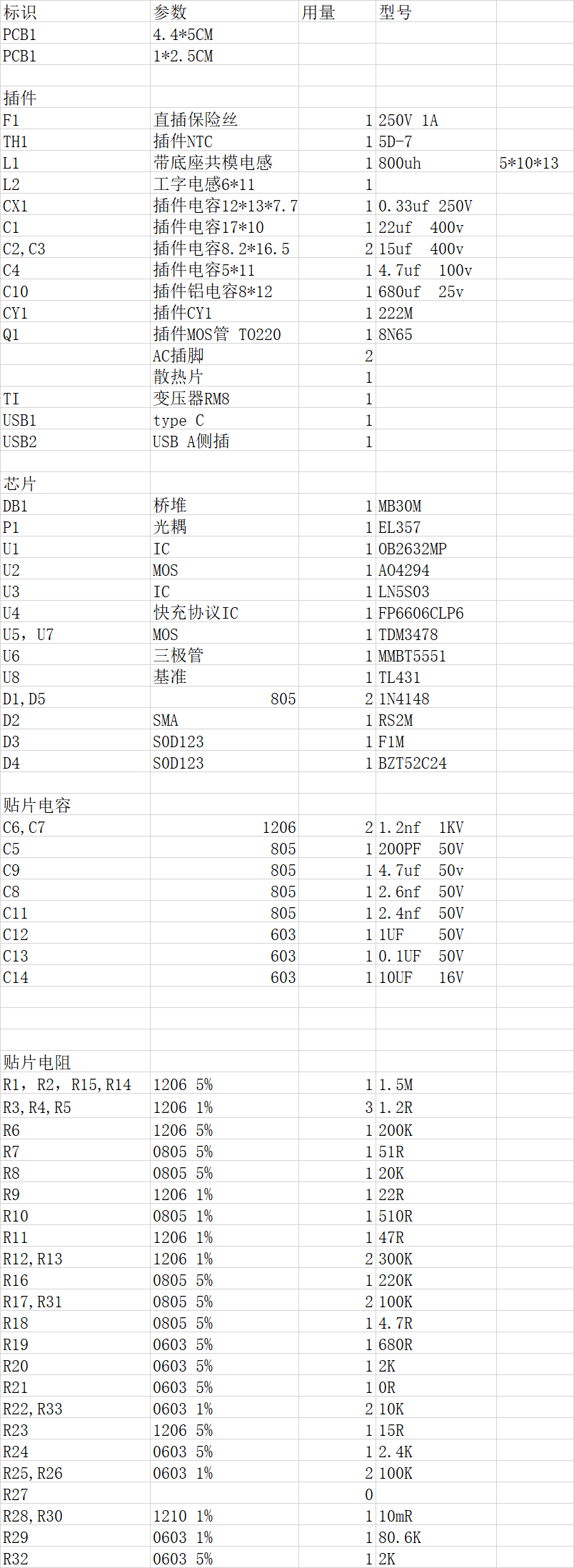 2, 双口A+C的30W PD快充充电器方案( 原理图,PCBA实物,BOM表)