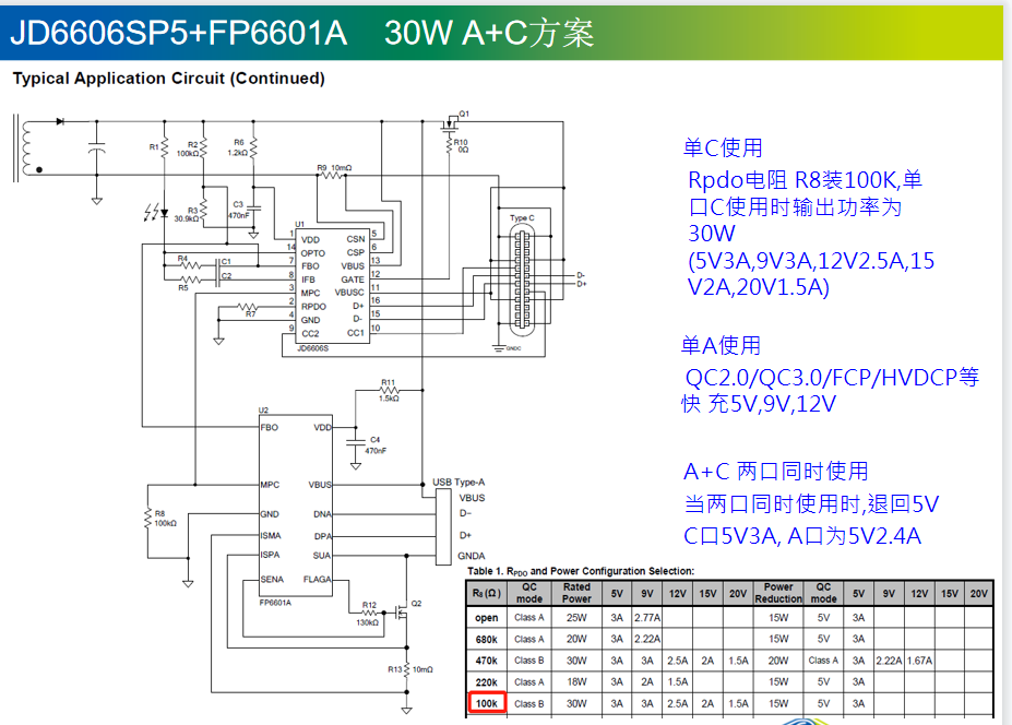 JD6606SP5+FP6601A -- 30W A+C方案 -- 功率分配
