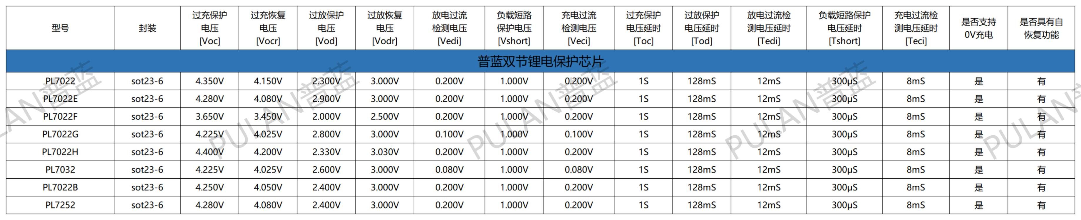 双节锂电池保护芯片参数选型表