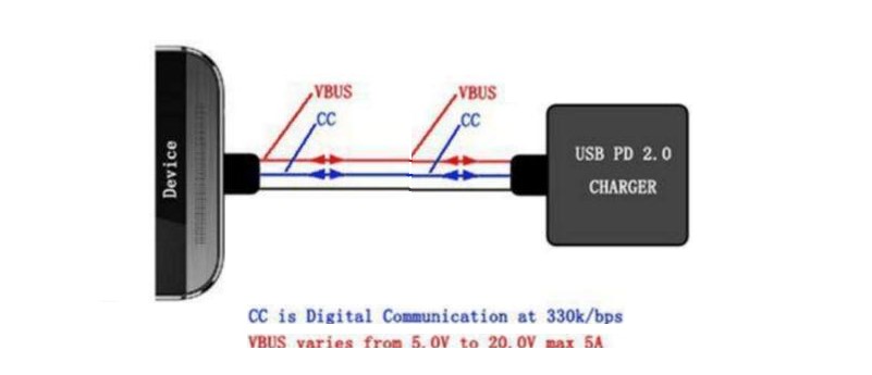 USB-PowerDelivery (USB PD看似只是电源传输与管理的协议,实际上它可改变端口角色,可与有源电缆通讯,允许成为受电设备等诸多高级功能,就是手机给另外一部手机的反向充电,这个知道就可以了。USB PD协议是通过 type C口独有的CC 引脚来进行通讯。
