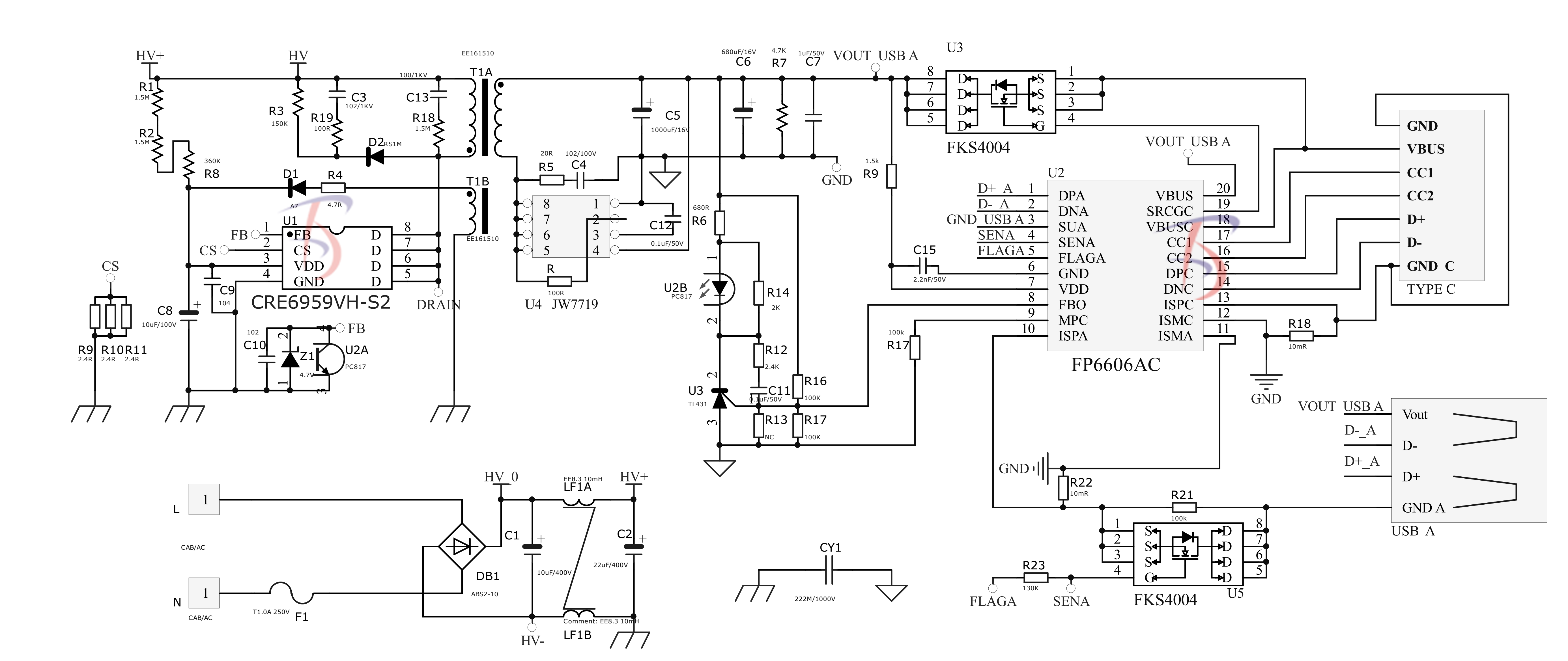 QC3.0/2.0和USB PD的通讯引脚不一样,所以我们在做PD充电器/充电宝和车充时,可以做到既能支持QC和PD的快充产品出来。如这款PD快充协议芯片:FP6606C