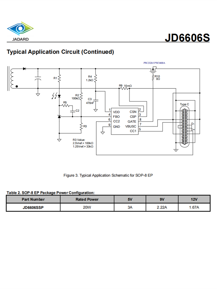 此外,JD6606S还可以监控USB D+/D-数据线,并根据不同的设备需求自动调整输出电压。它能够提供3.6V至20V的输出电压。